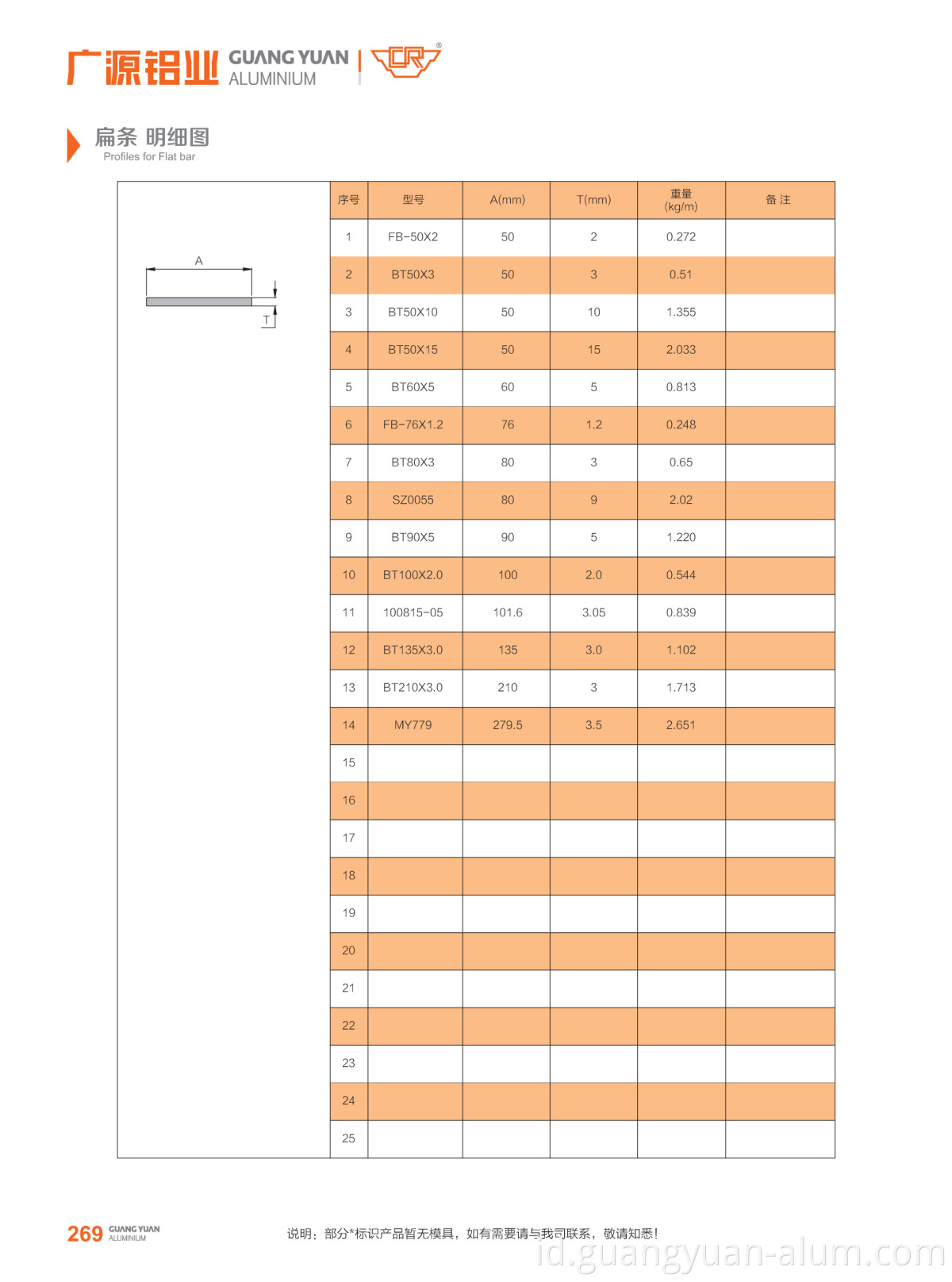 Guangyuan Aluminium Co., Ltd dilengkapi dengan baik dengan aluminium flat bar dies, yang dengan kisaran ketebalan 1,0 mm hingga 10 . Ketebalan 0 mm untuk dipilih pelanggan. Silakan lihat gambar detail berikut untuk mengetahui preferensi Anda. Bahkan jika profil yang Anda inginkan tidak ada dalam daftar dalam katalog kami, sebagai perusahaan ekstrusi alumin yang berpengalaman , kami fleksibel untuk membuat ekstrusi aluminium khusus Anda mendasarkan pada dimensi Anda.